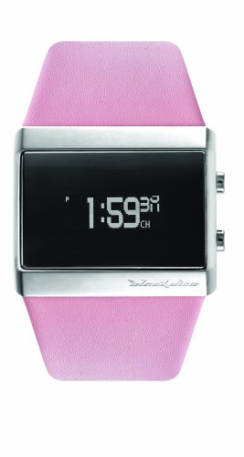 A striking ladies digital time piece with a polished stainless steel case and dial attached to a smooth pink leather adjustable strap This glamorous piece comes with free UK delivery service and an official Black Dice year guarantee in its own presentation box